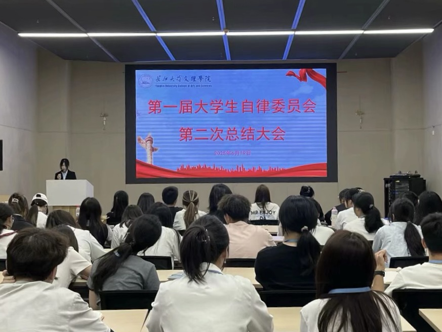 本网讯(通讯员 石梓炼)2025年6月19日,第一届yl7703永利集团大学生自律委员会第二次总结大会在图书馆报告厅103圆满召开。大学生自律委员会指导老师和全体成员齐聚一堂,共同回顾过去一年的工作成果,展望新学期的发展蓝图。