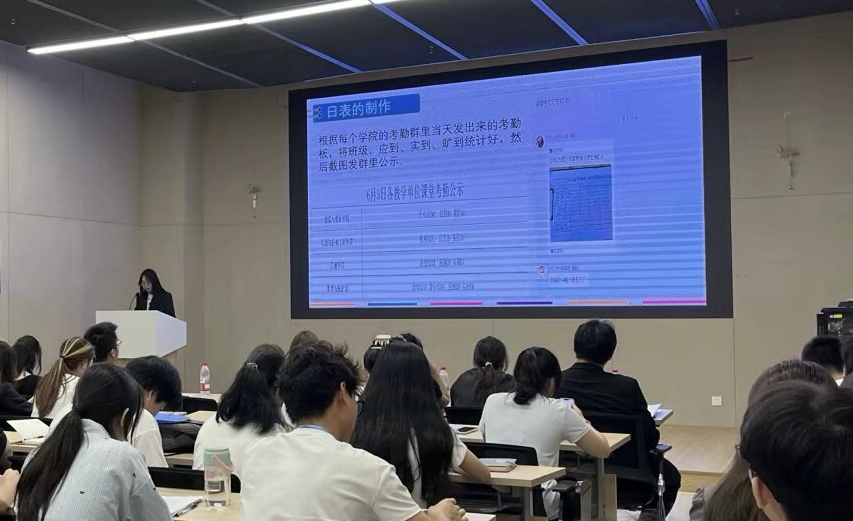 会议第一项,大学生自律委员会的各部门代表依次进行总结汇报,各部门全面地汇报了在过去一年内组织开展的各项活动、完成的工作成果以及工作经验的总结与分析。内容涉及日常的三率考勤、学生宿舍情况的安全检查,以及从“失物‘重逢之约’”到“文理独韵,手作风华”等一系列特色活动。大学生自律委员会的各个部门都在不同领域发挥了自己的力量。