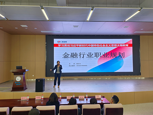 本网讯 近日,在B-112学术报告厅,经济与法学系与广发证券联合开展金融行业职业规划讲座。经济与法学系和广发证券荆州营业部负责人、师生代表共百余人参加讲座。经济与法学系党总支书记辛裕主持讲座。