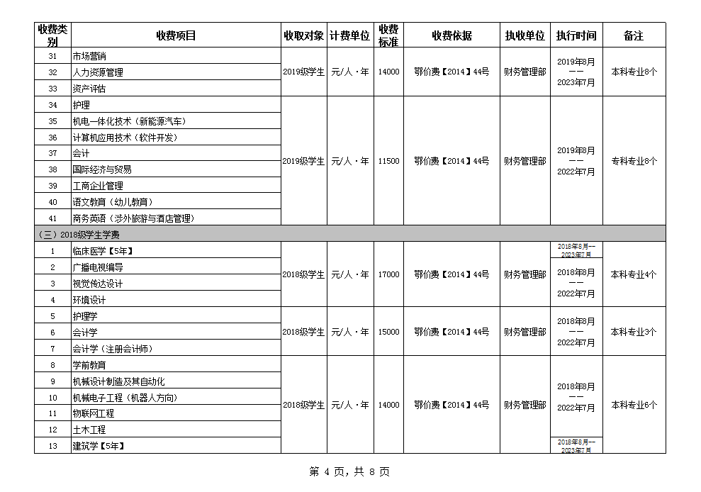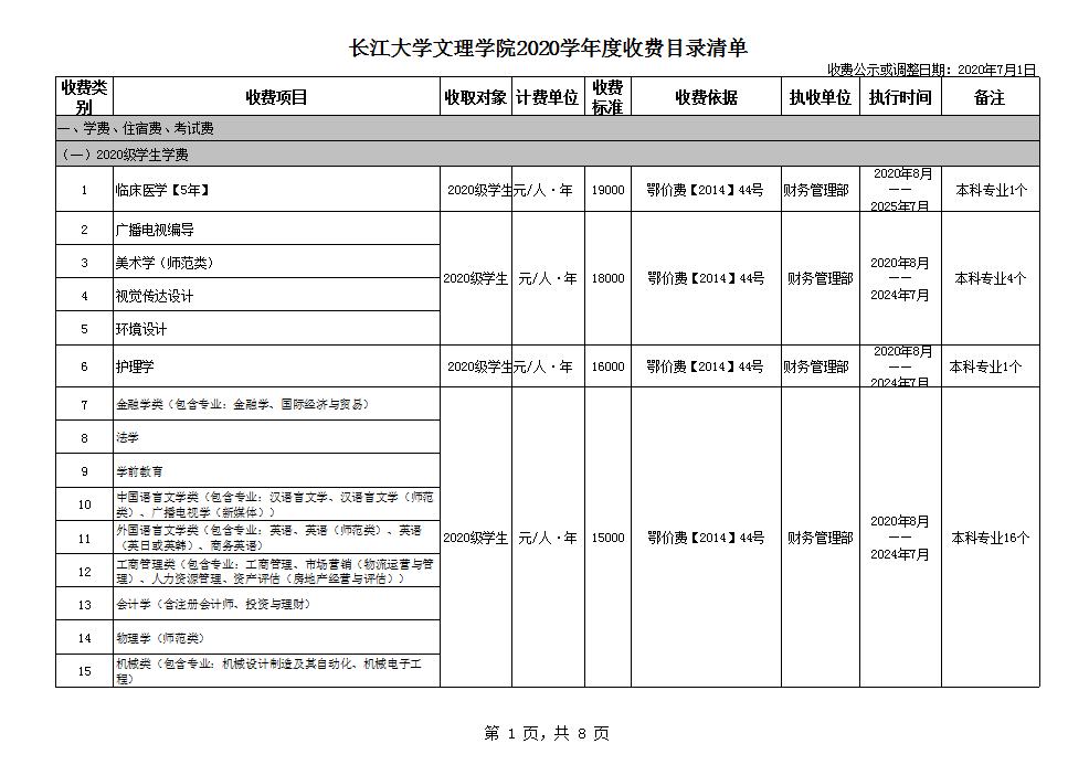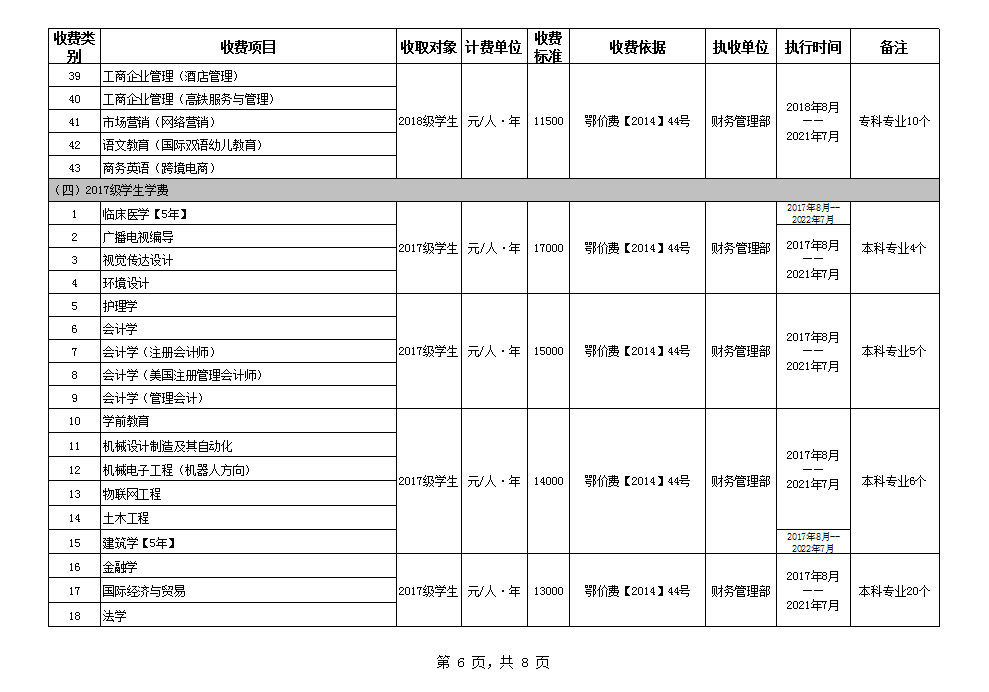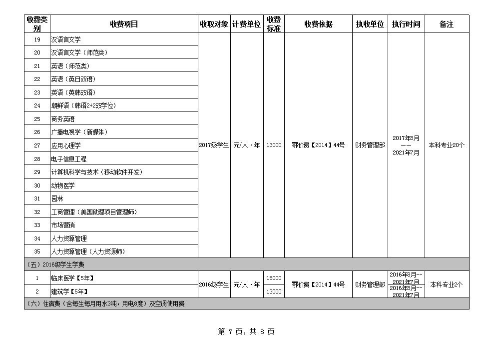 根据省教育厅、省物价局《关于我省民办普通高等学校学费标准备案及有关问题的通知》(鄂价费(2016)63号文)的文件精神,现将我院2020年收费目录清单公布如下: