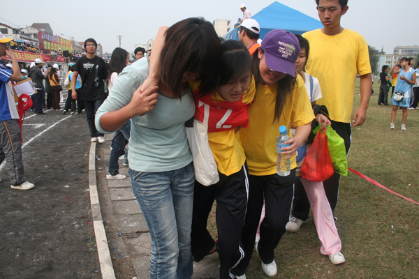 本网讯(见习记者 李研)10月17日是学院田径运动会的第二天,比赛依然在秩序井然地进行着,赛场上充满了运动的青春气息,跑道上不时掠过一个个运动员们疾弛的身影。大家为胜利者的成功而喜悦,也为失利者的坚持而动容。 “虽然我是最后一个到达终点线的,但仍然要奖励自己,因为我虽然没有超越别人,但是我超越了自己,于我而言,这也是一种胜利吧。这必定会成为我大学里最难忘的记忆!”来自基础学部的刘念这样告诉记者。据了解,刘念同学之前并没有参加过任何体育竞赛活动,但本次运动会她仍然报名参加了女子3000米比赛,并坚持跑完全程。 (责任编辑 周芳)