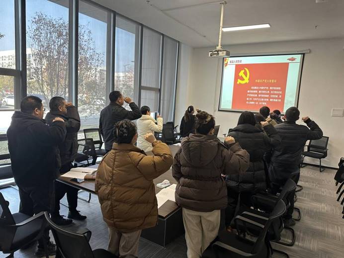 接着,在支部主题党日活动中,全体党员重温入党誓词、交纳党费,集体学习《中国共产党章程》(第三章)。