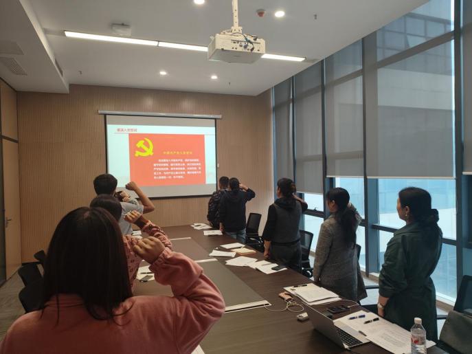 在主题党日活动中,全体党员重温入党誓词并现场交纳了党费。随后,大家集中学习了《中国共产党章程》第八至十一章内容,进一步强化了党的组织纪律观念。