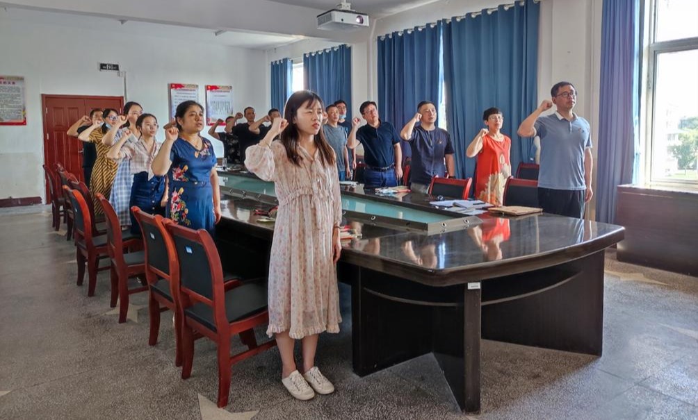 随后,党员老师开展6月支部主题党日活动,让华带领全体党员重温入党誓词,并按时缴纳党费,学习《中国共产党章程》第六章及yl7703永利集团委员会关于开展党员干部下基层察民情解民忧暖民心实践活动的实施方案。