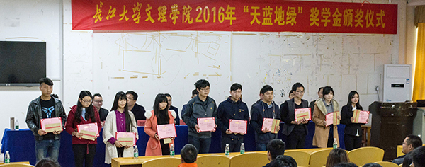 本网讯(记者 刘磊)3月24日下午,我院2016年“天蓝地绿”奖学金颁奖仪式在西校区学术报告厅举行。