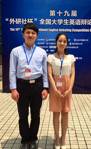 本网讯(通讯员 樊雪琦) 5月8日,从第十九届“外研社杯”全国大学生英语辩论赛华南赛区总决赛现场传来喜讯:我院外语系选手樊雪琦、周全组成的代表队喜获华南赛区三等奖。