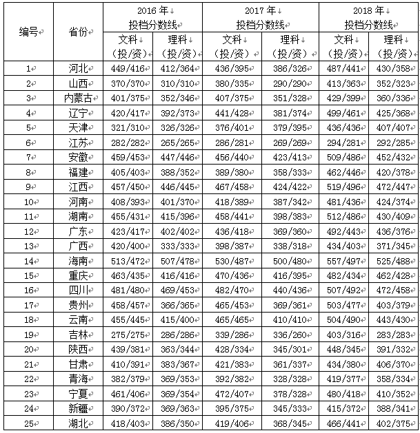 备注:表格中数据均为普通文史、理工类本科专业(不含艺术类专业)的投档线与资格线。