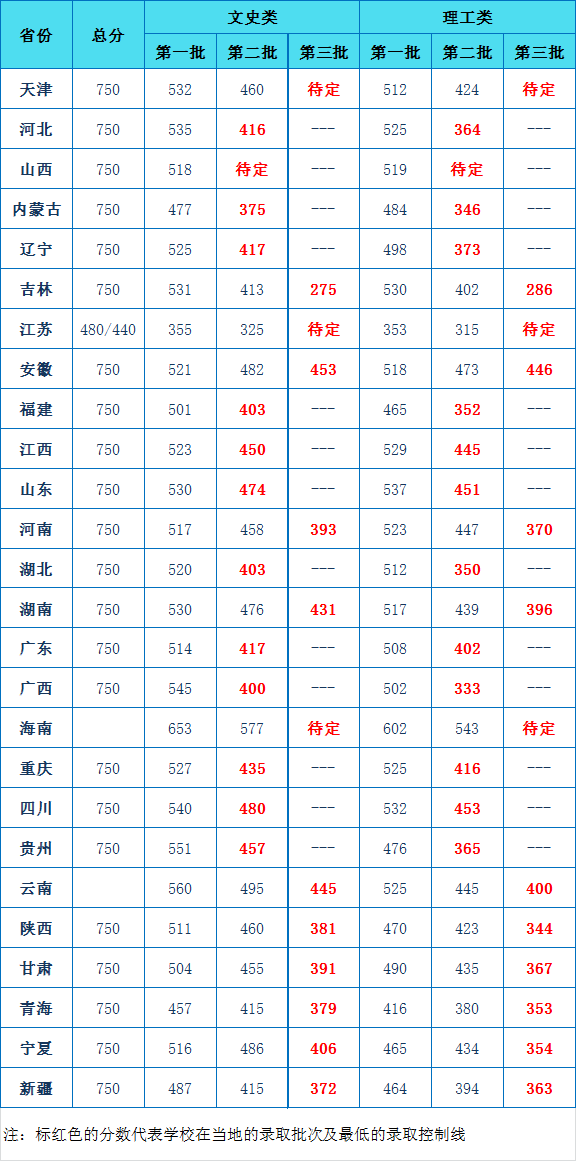 yl7703永利集团2016年在各省本科录取最低控制分数线